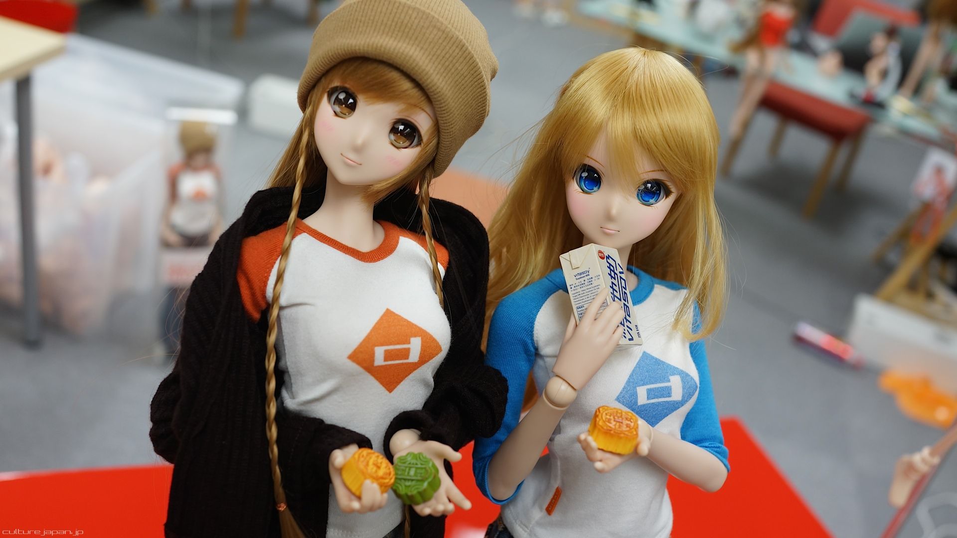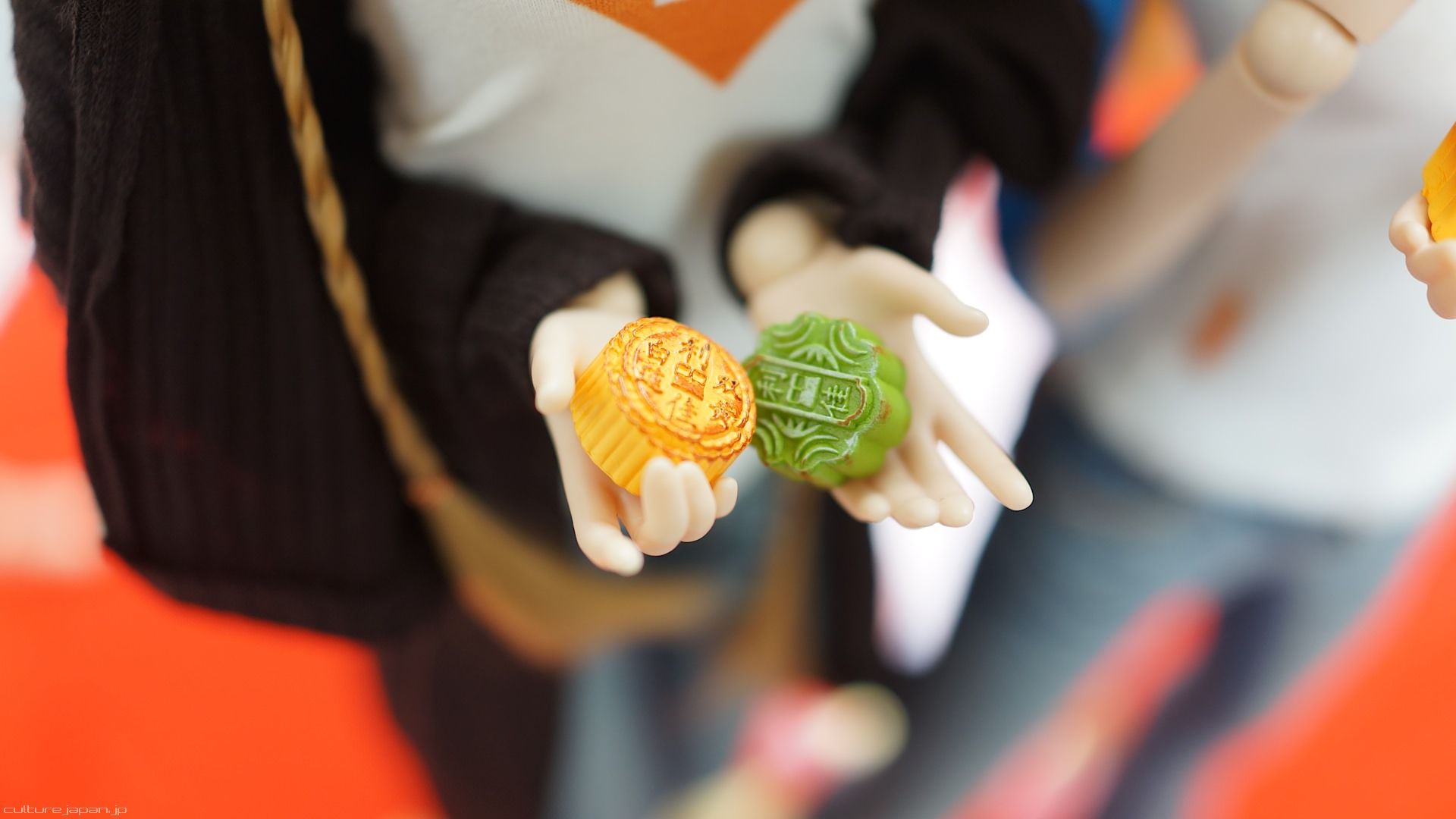 To all folks out there who celebrate - happy Mid-Autumn Festival! Here we have Mirai and Kizuna Smart Doll celebrating by om nomming on some Mooncakes.