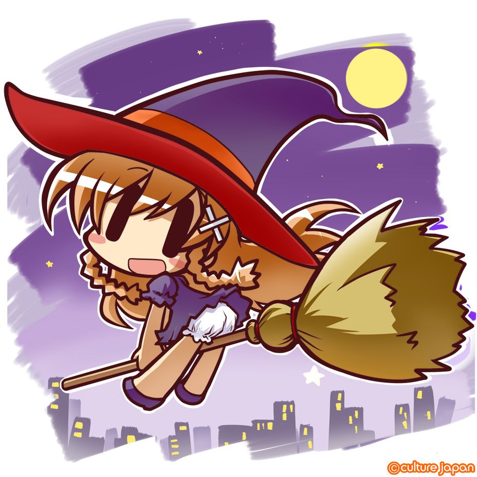 Mirai Suenaga wishes you all a happy Halloween! This adorabe illustration is from the Moekana series and is actually for the hiragana "ho" for "houki" ] which means "broom". Illustration is by Ikkyu-san.