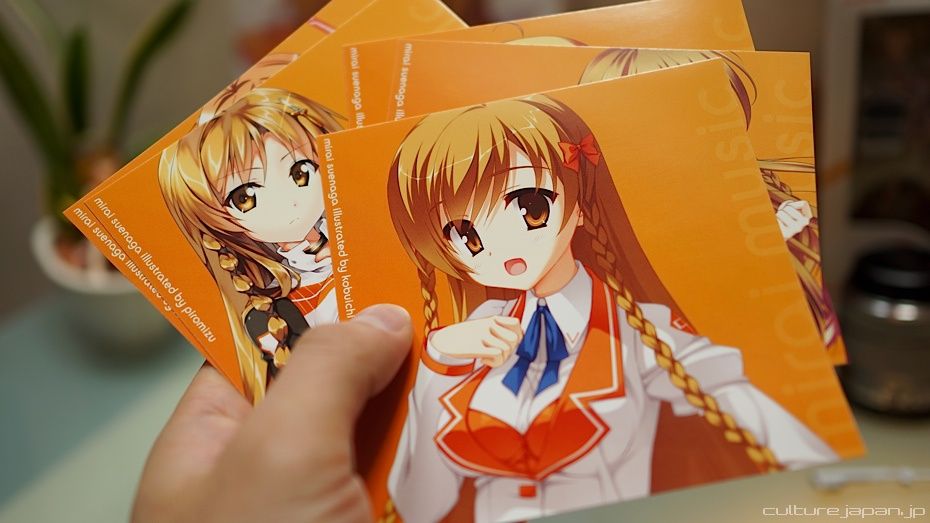 The CD includes postcards of many popular illustrators who have doodled Mirai-chan for us. As the CD went to production last year however, the set does not include some of the latest illustrators like Iizuki Tasuku.