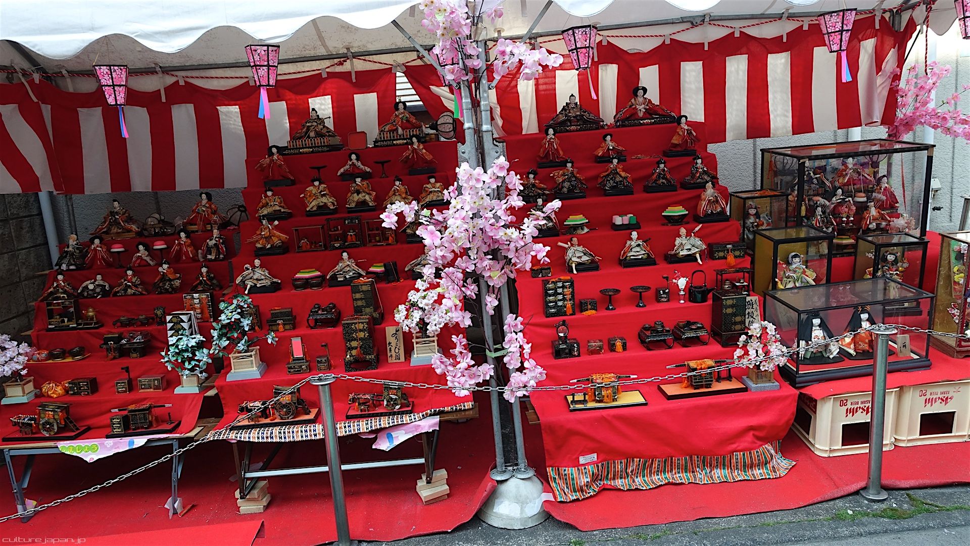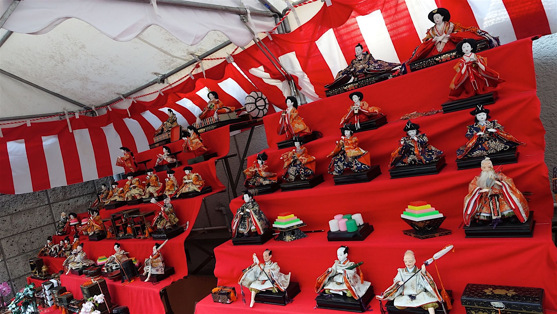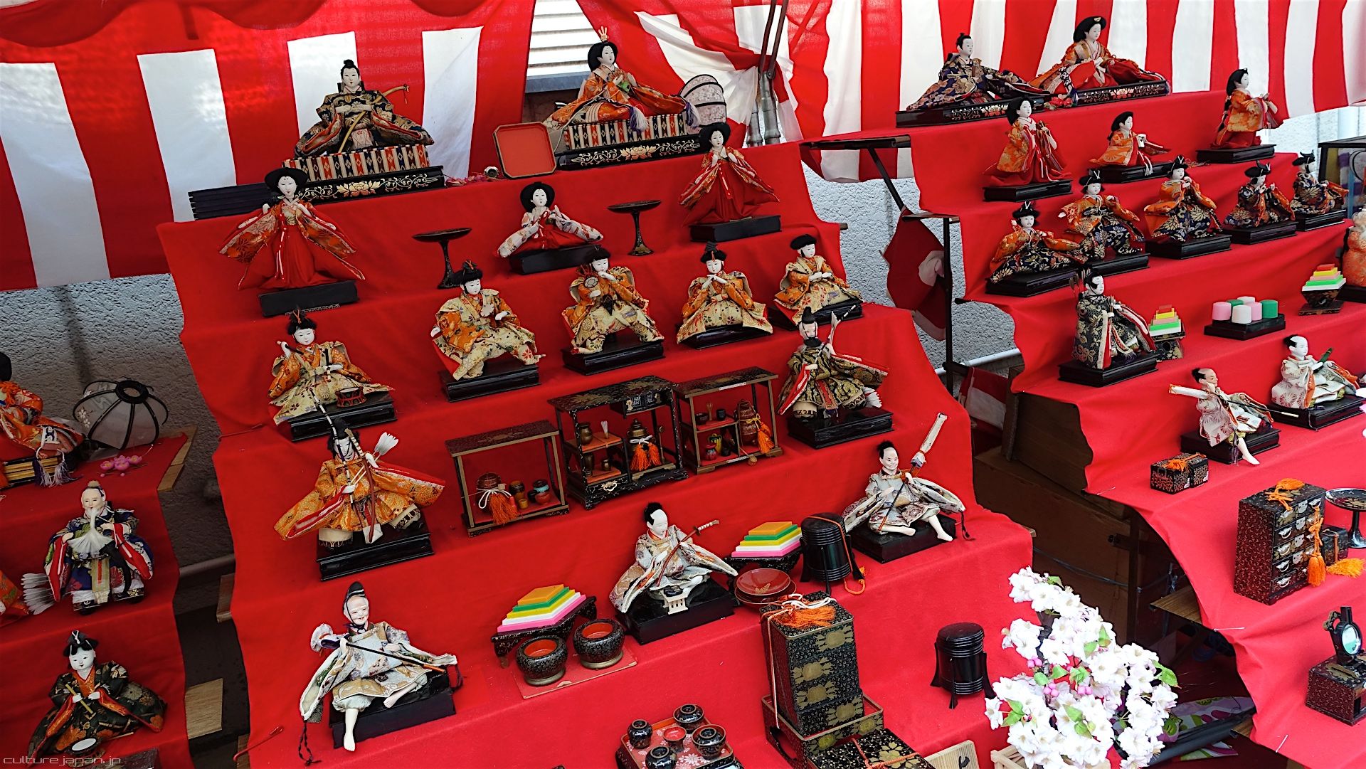 The Hina Matsuri tradition started during the Heian period in Kyoto where daughters of noble families would play with the dolls. It wasn't until the Edo period however when the tradition really started to take off across Japan with folks displaying the Hina dolls on the steps covered in red cloth.