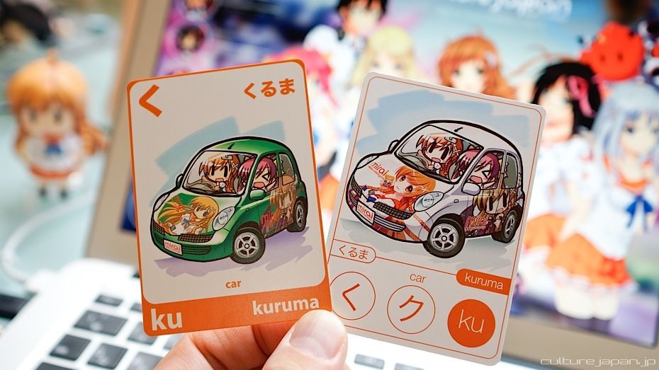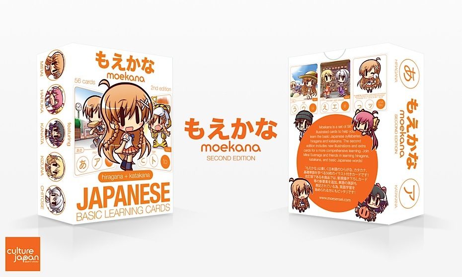 Moekana is a set of illustrated flash cards to help you learn the basic Japanese syllabaries, hiragana and katakana. The pack of 56 different Moekana cards feature cute Japanese stylized illustrations that make learning Japanese fun and easy - but don't take my word for it...