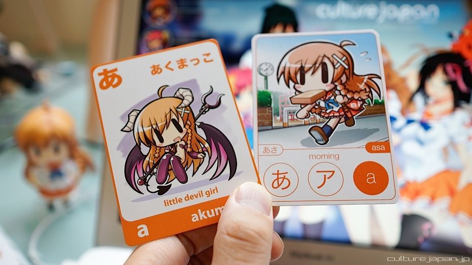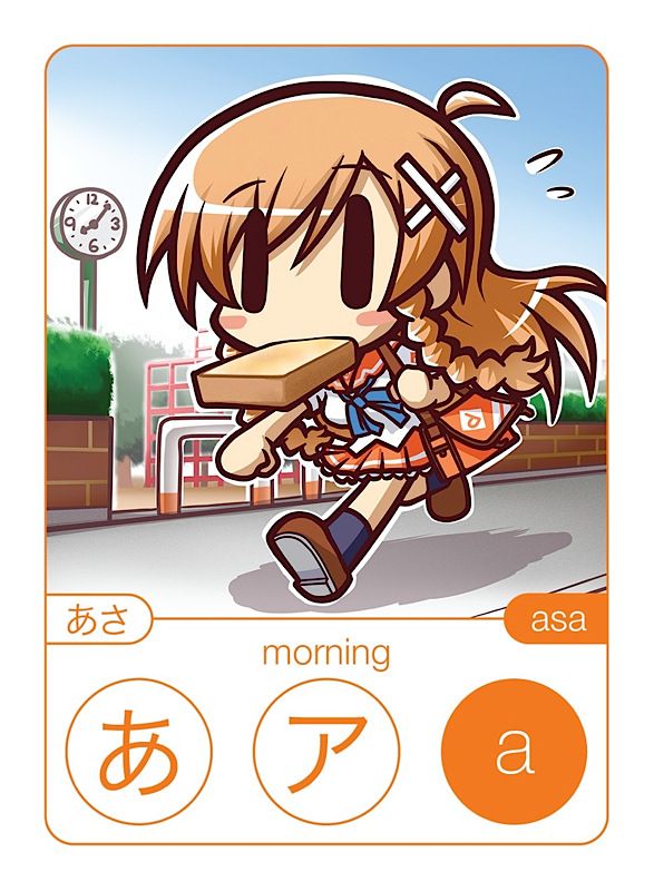 As you can see, the theme for this card has completely changed from "Akumakko" to "Asa." The addition of katakana makes the second edition a major upgrade from the original so you can now learn both types of writing at the same time.