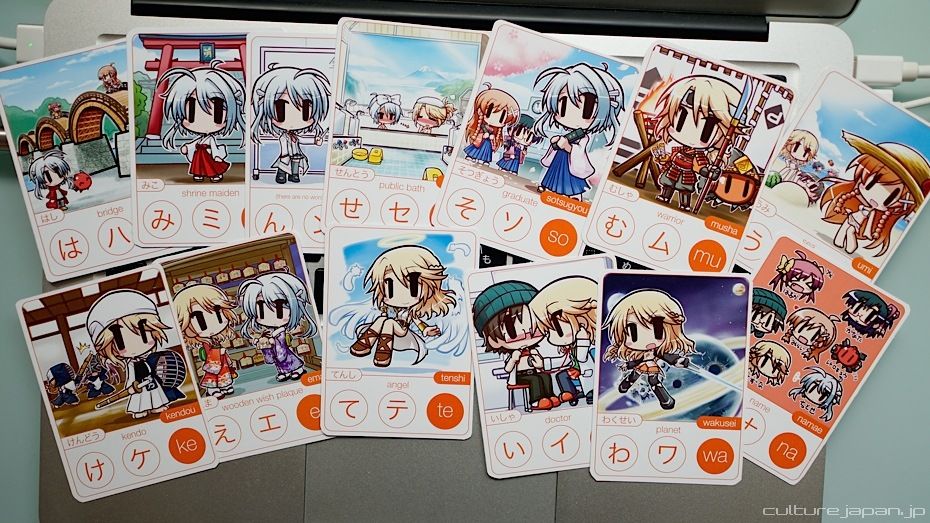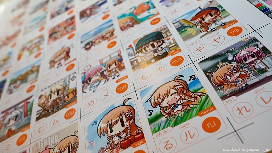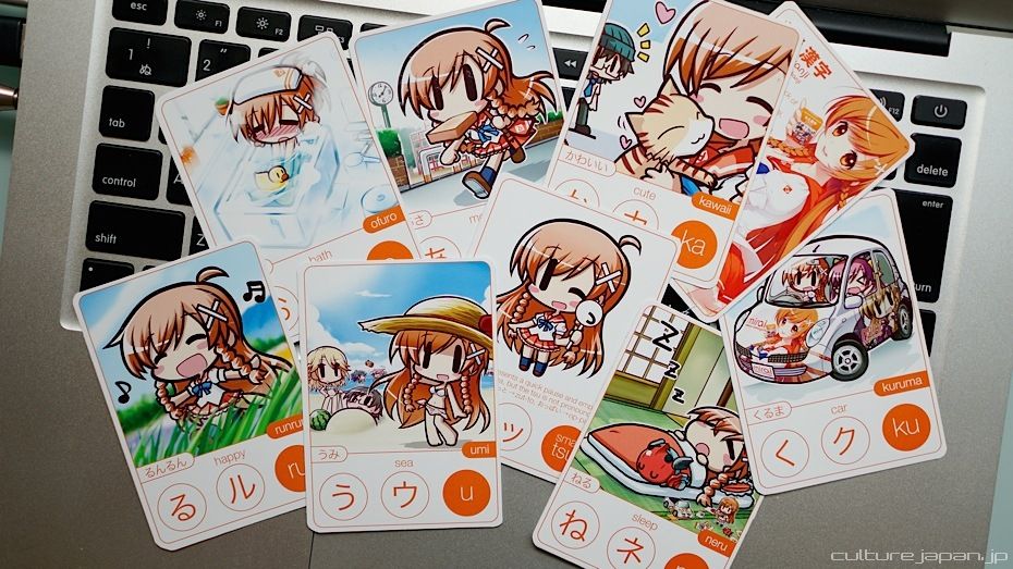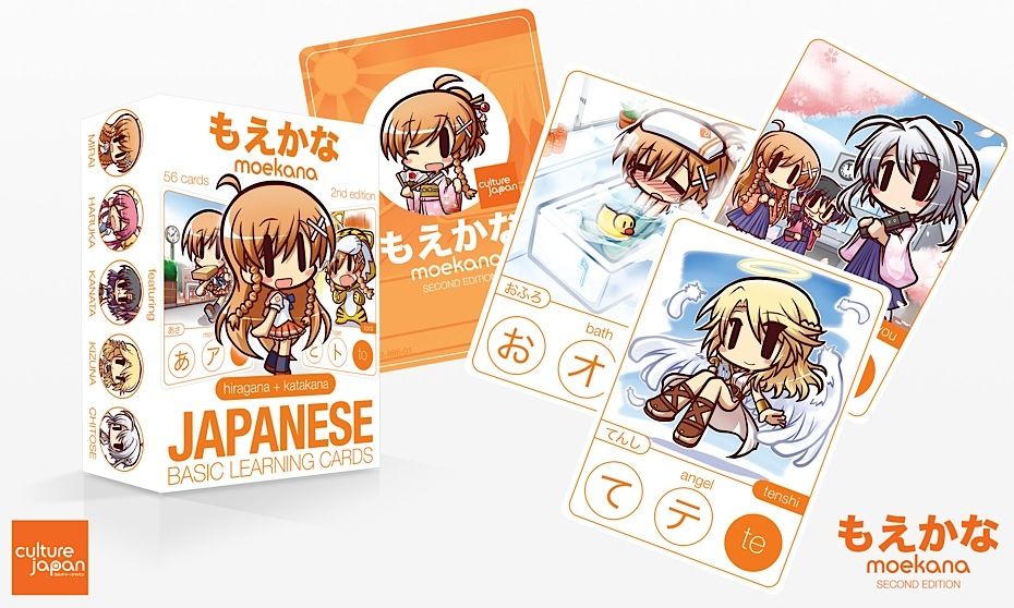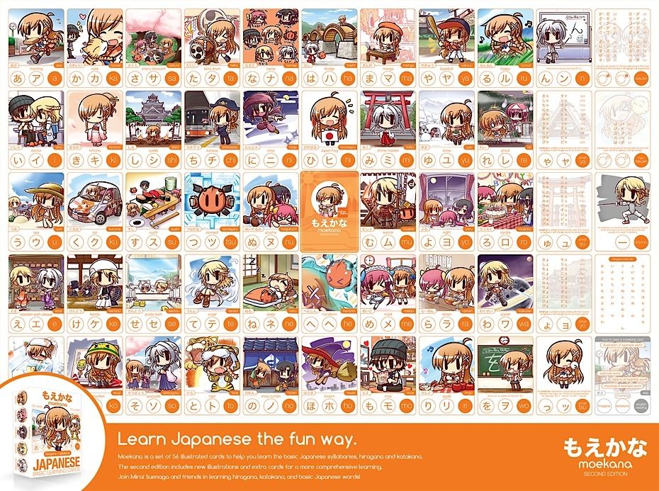 Moekana is a set of illustrated flash cards to help you learn the basic Japanese syllabaries, hiragana and katakana. The pack of 56 different Moekana cards feature cute Japanese stylized illustrations that make learning Japanese fun and easy - but don't take my word for it...