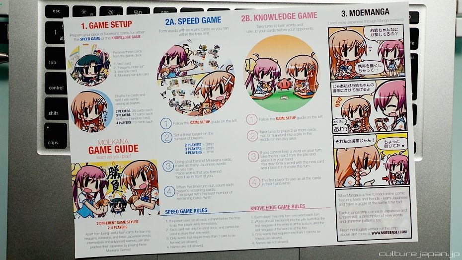 A brand new Moekana Game Guide has also been included in this edition, which explains the rules of how to play two different types of Moekana Games, a fun and effective way for intermediate level Japanese learners to test their vocabulary and learn new words from their opponents.