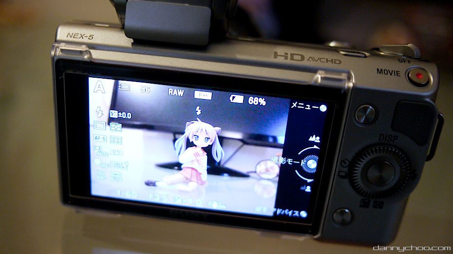 The editor for OTACOOL was in the office the other day and brought along a new his new toy - the Sony NEX-5. I like shiny metal things so I took a closer look - all these photos taken with the Lumix GF1 with pancake lens.