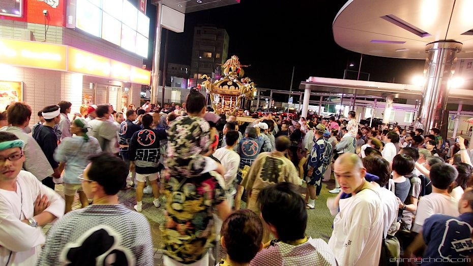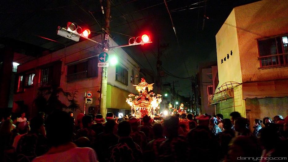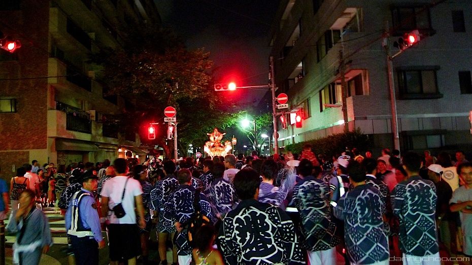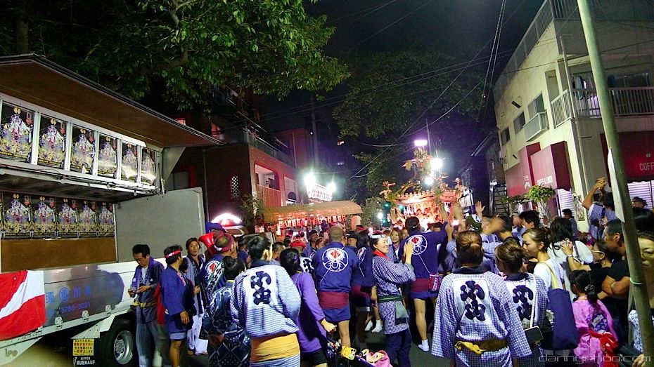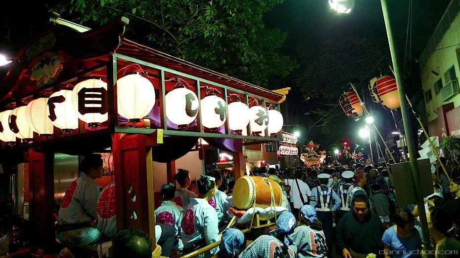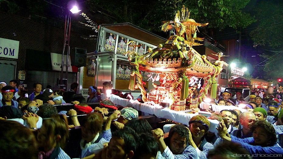 The Omikoshi is a portable Shinto shrine for the gods and spirits. It resembles a small building which is fixed to 4 poles. Omikoshi are usually very heavy and require many folks to carry it on their shoulders. The Omikoshi is usually bounced up and down to the rhythm of the chants as you can see from the video that wifey took below as I took the photos ^^;