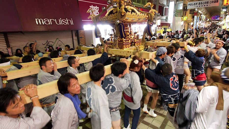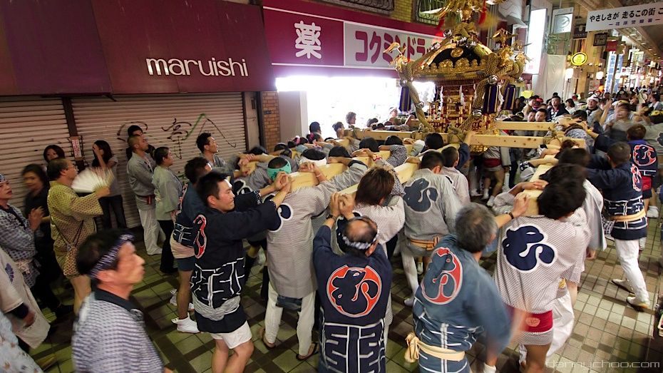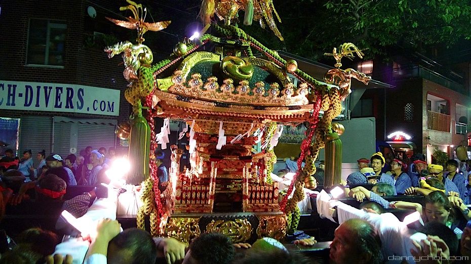 Tis approaching the end of the Summer meaning Matsuri or festival time in Japan. Many shrines have events and food stalls set up and the streets are lined with lanterns. Along those streets one would occasionally see a Mikoshi being carried along. The honorific form of "Mikoshi" is "Omikoshi."
