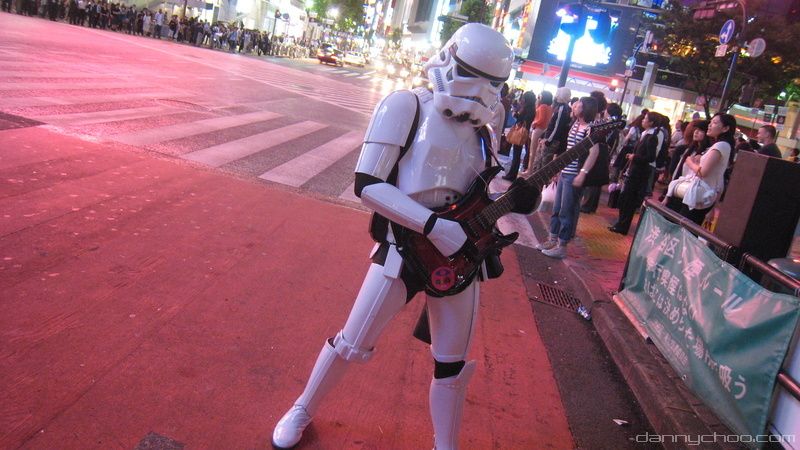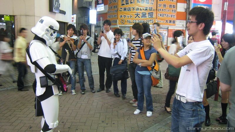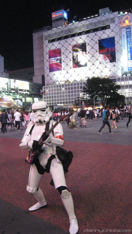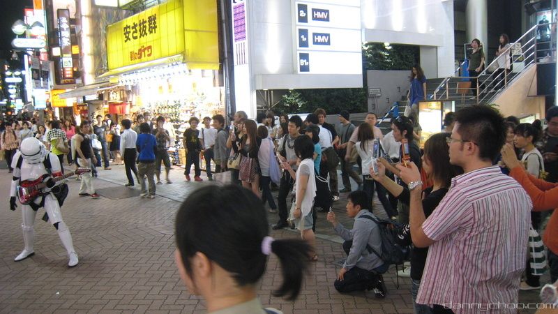 At the Miyamasu-zaka entrance at Shibuya. Many of the buildings used to have their neon lights on but many of them were off for some reason.