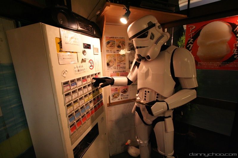 If you walk into a place that serves food and see one of these, it means you have to pay for your food first. Insert your money and choose what you want to eat - the name of the dishes are labeled on the buttons. A ticket will come out which you can either eat (pointless and wont fill you up) or hand to the guy/gal in the shop who will exchange it for some real food.
