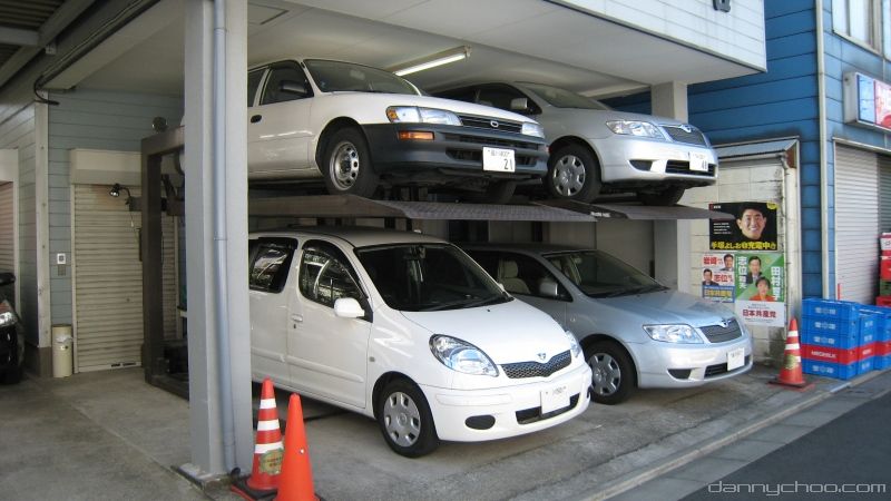 The car on the bottom has to be moved manually by a human in order to fit a car on top. Not sure about this particular one but many of them are powered by motors and air pressure. If you want to park 6 cars in front of you house you can always get