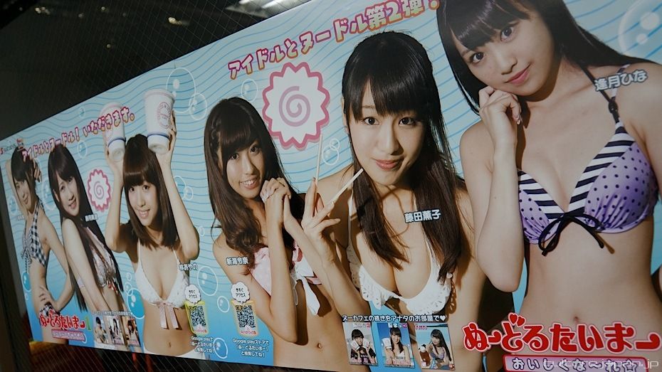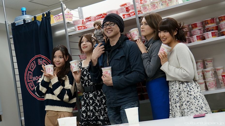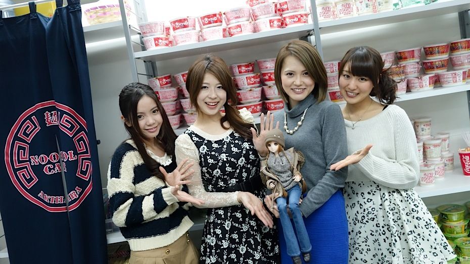 After handing over the ticket from the vending machine, the idol of your choice pours hot water into a Cup Noodle and sets a timer for 3 mins during which you get to speak to her - when your time is up she will ask you to go away to sit at a table to eat on your own ^^;