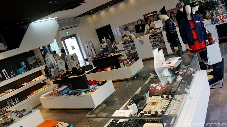 The first floor of the Evangelion store is mainly filled with apparel.
