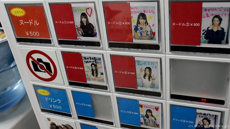 When you walk into the store, you will see a vending machine with photos of your favorite idol - pay 800 yen to speak to the idol of your choice or 500 yen to leave it up to the shop owner to choose for you.