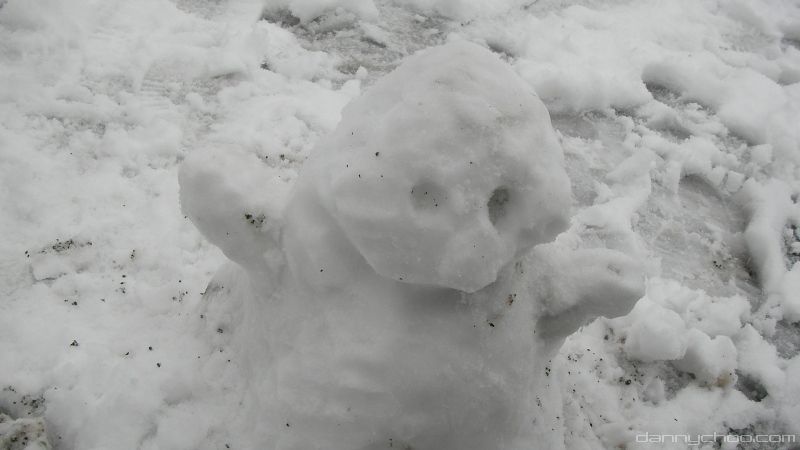 Snow man is look sad.
