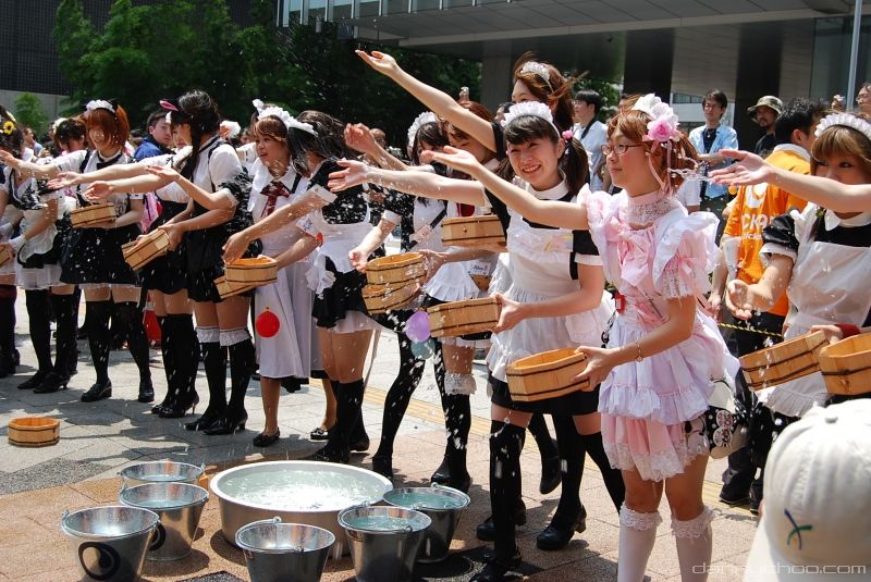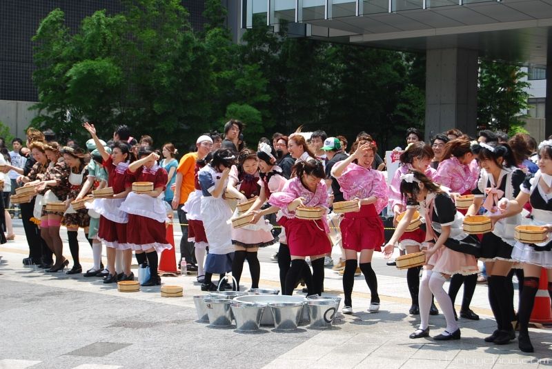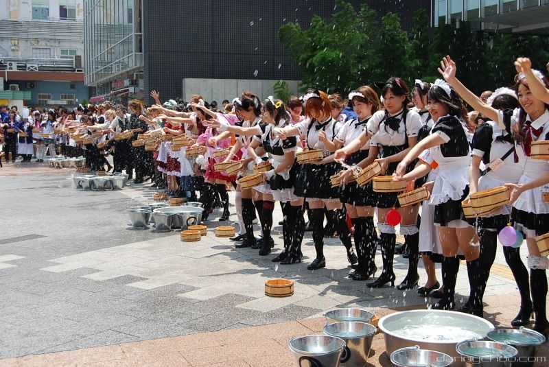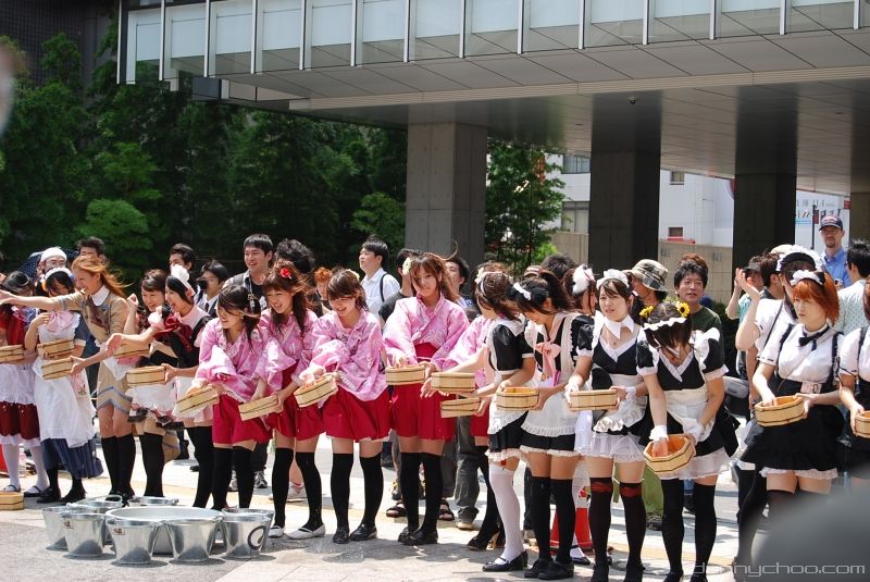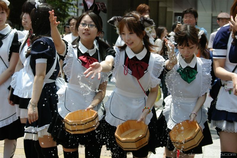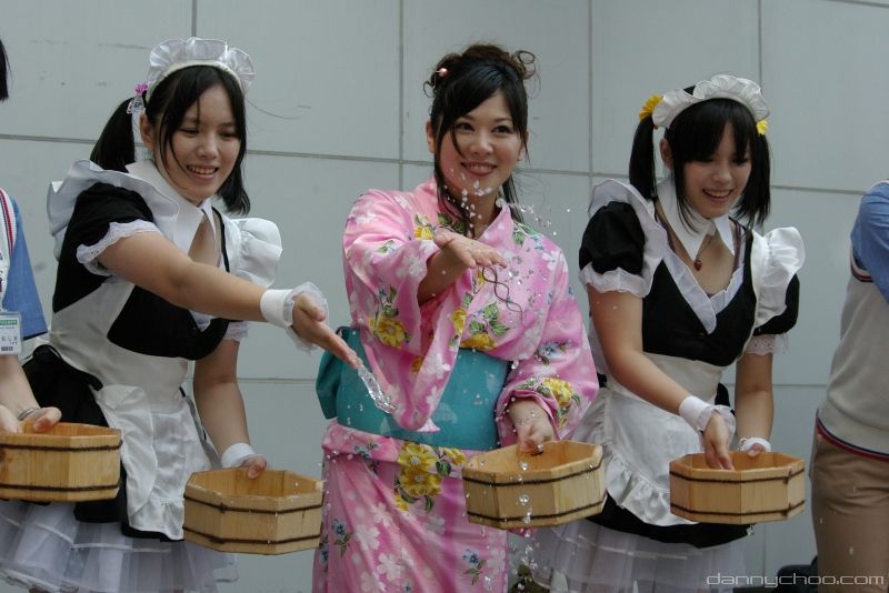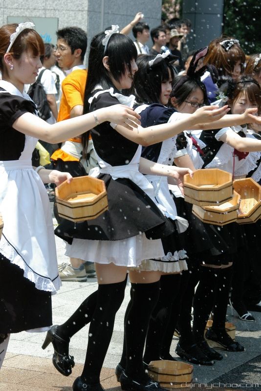 The Uchimizukko Daishugo event has made this tradition more interesting by getting legions of maids to do the watering. The pink maid in this pic wearing glasses was my fave out of the lot ^o^