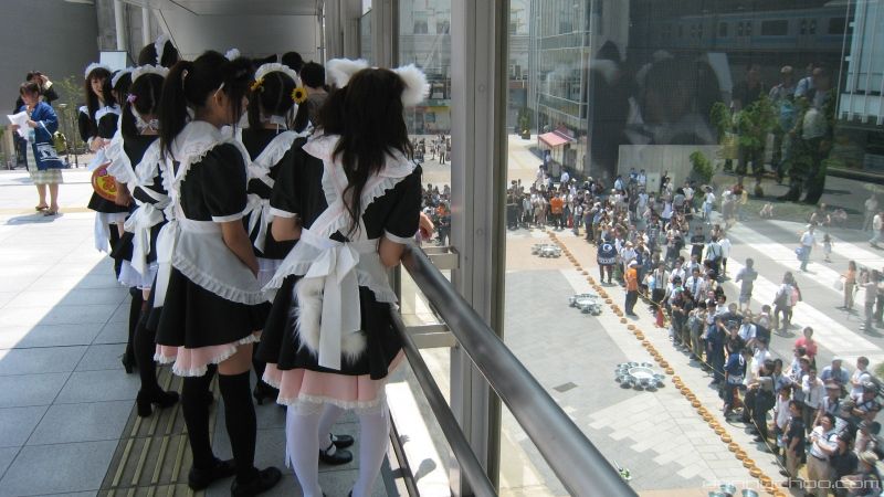 This event has to be the biggest maid only event. The girls are waiting on the bridge to head down an escalator.