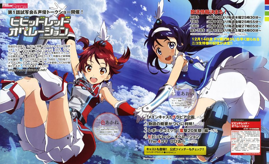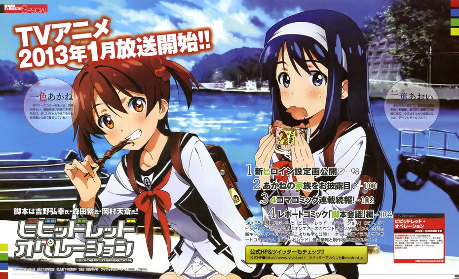 Vividred Operation is an upcoming orignal anime being directed by Takamura Kazuhiro (Strike Witches, Strike Witches 2) and being produced by A-1 Pictures (Sword Art Online, anohana)