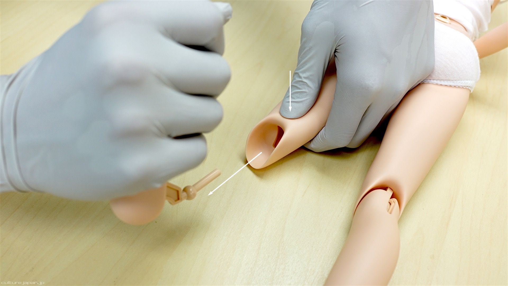 Smart Gear torso's, you will need to replace it - after removing the arms, head and bust, push down on the bottom of the thigh to open the slot slightly and pull out the shins in the direction that you see in the photo.