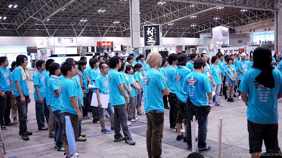 At about 09:30, the Good Smile team get together for some pep talk.