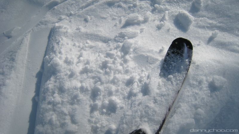 Snow is still powdery at this time of year at the peak but becomes slushy at the bottom.