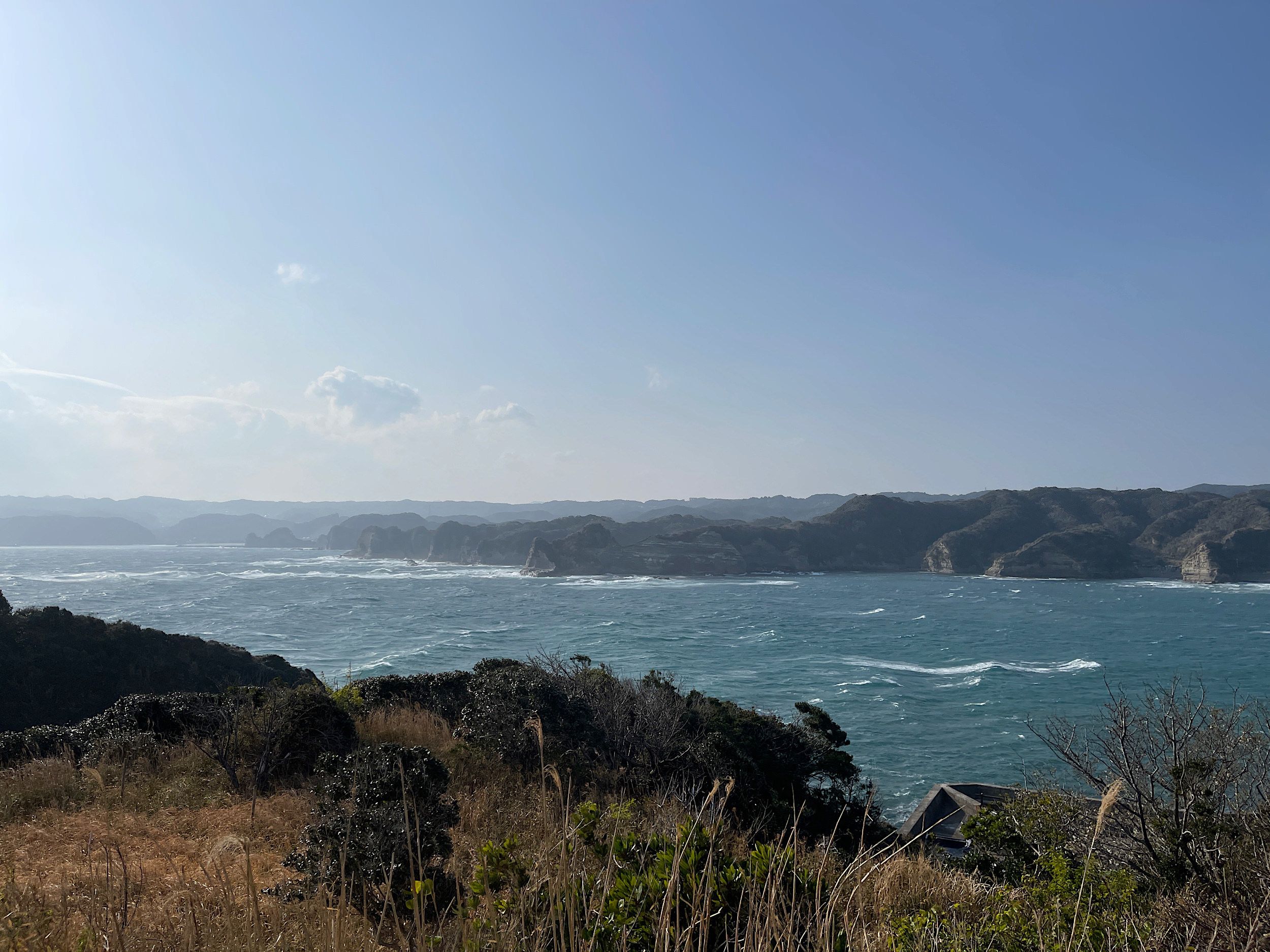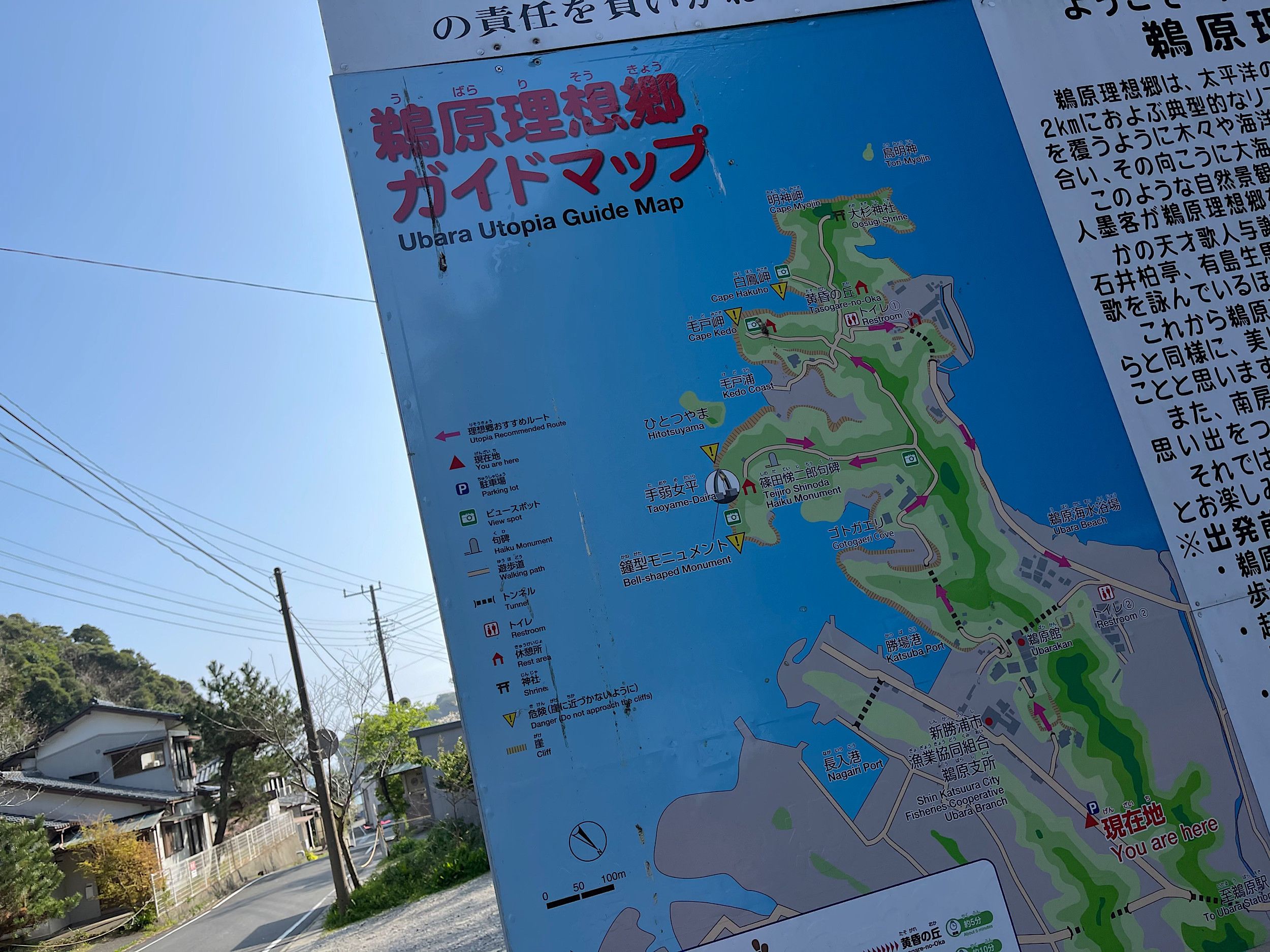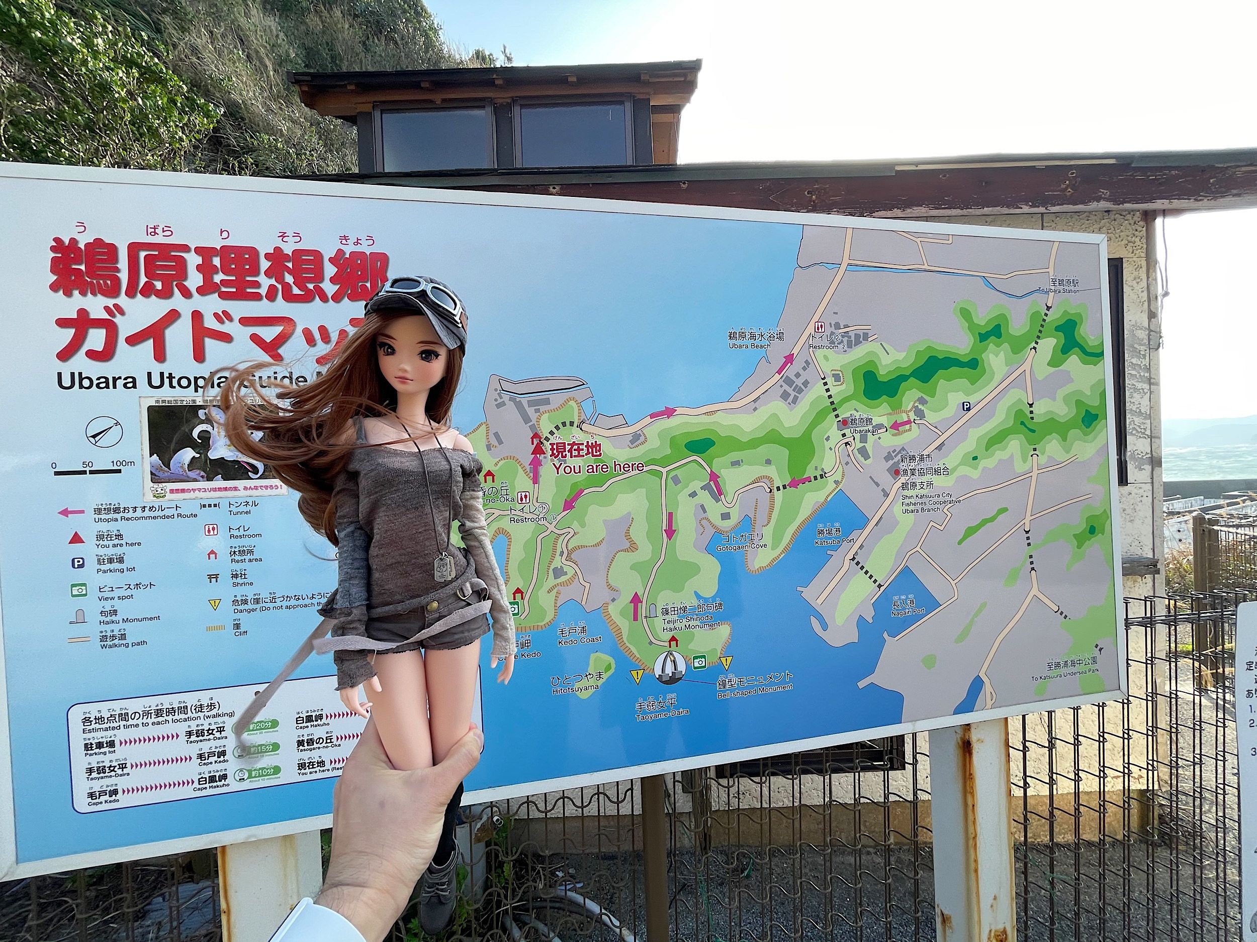 Located in Katsuura Chiba is Ubara Utopia (鵜原理想郷) - a little-known coastal hiking area surrounded by lush vegetation. It takes about 2 hours by car from central Tokyo but is well worth the trip - the scenery is lovely. We took Dimension with us - luckily, she had her little baseball cap to keep her hair at bay as it was very very windy ;-)