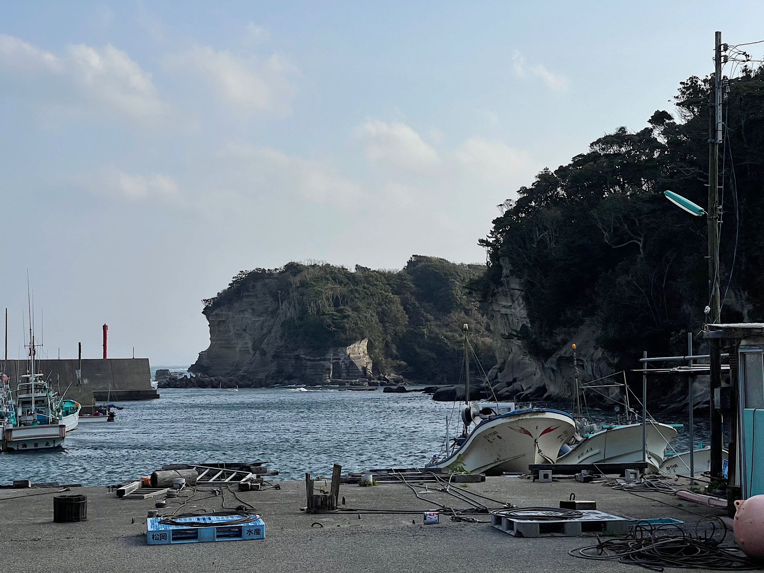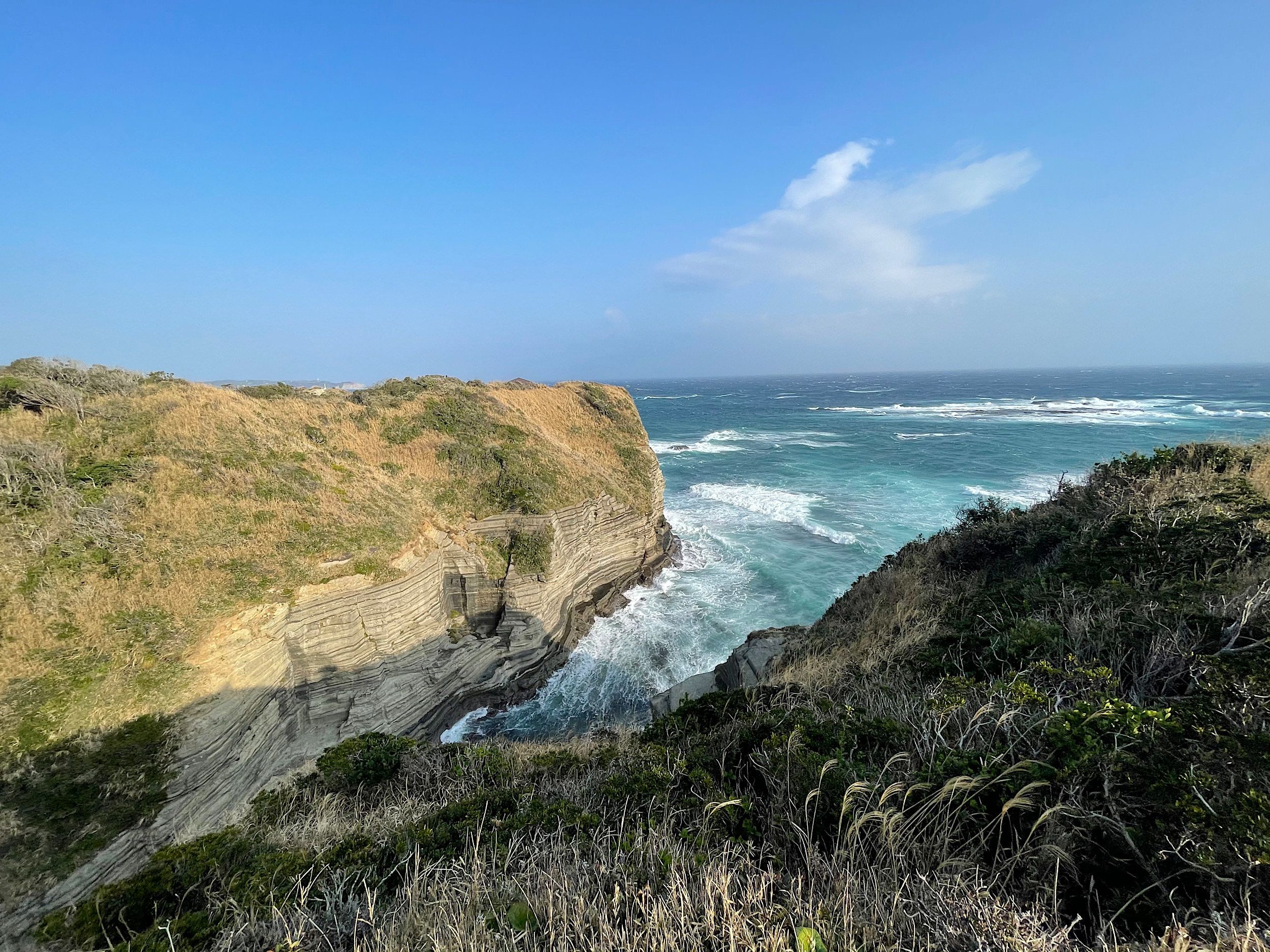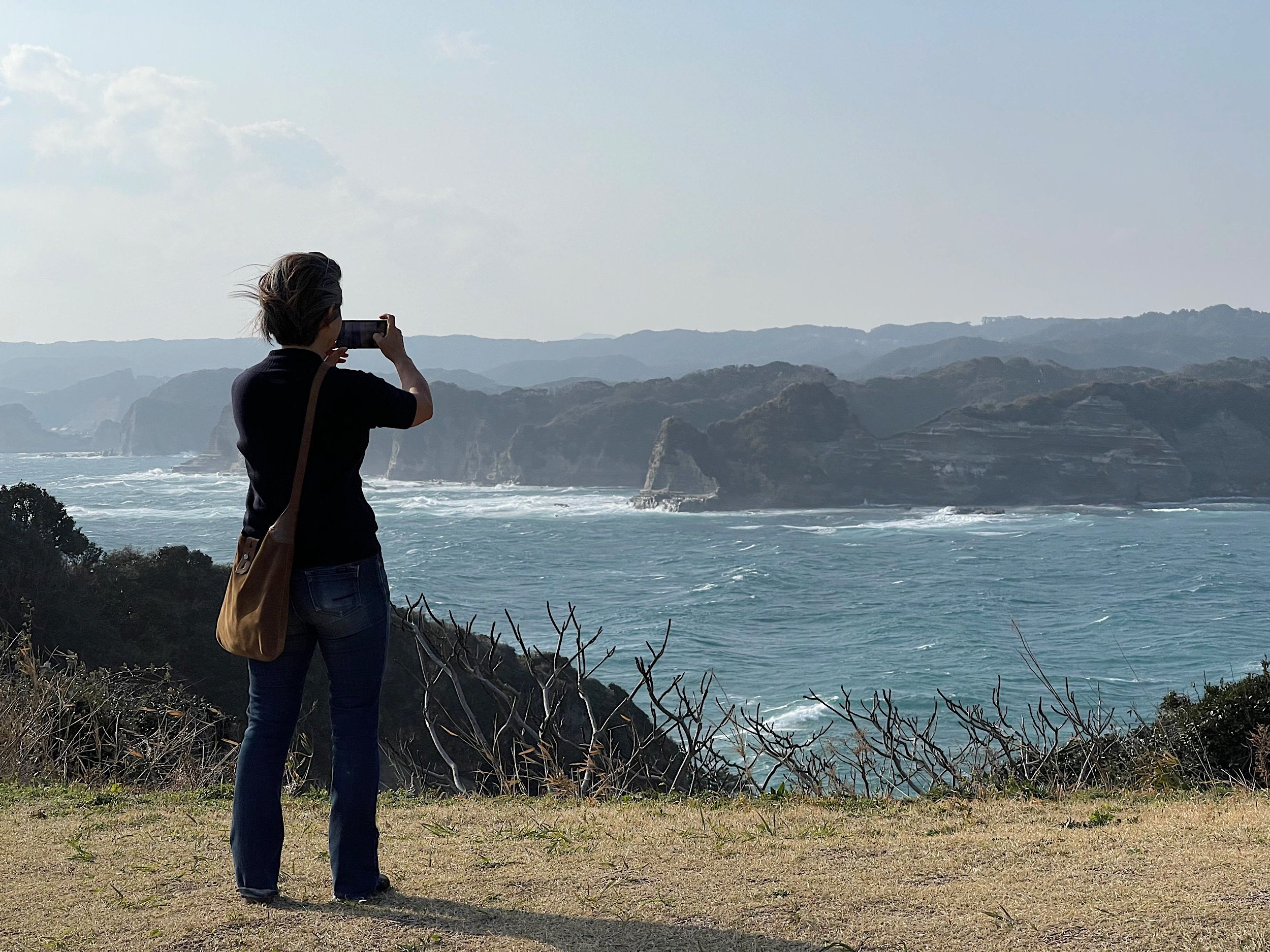 Located in Katsuura Chiba is Ubara Utopia (鵜原理想郷) - a little-known coastal hiking area surrounded by lush vegetation. It takes about 2 hours by car from central Tokyo but is well worth the trip - the scenery is lovely. We took Dimension with us - luckily, she had her little baseball cap to keep her hair at bay as it was very very windy ;-)